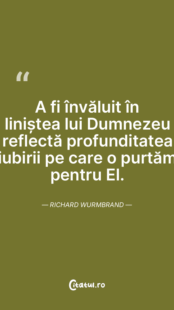 A fi învăluit în liniștea lui Dumnezeu reflectă profunditatea iubirii pe care o purtăm pentru El. Richard Wurmbrand