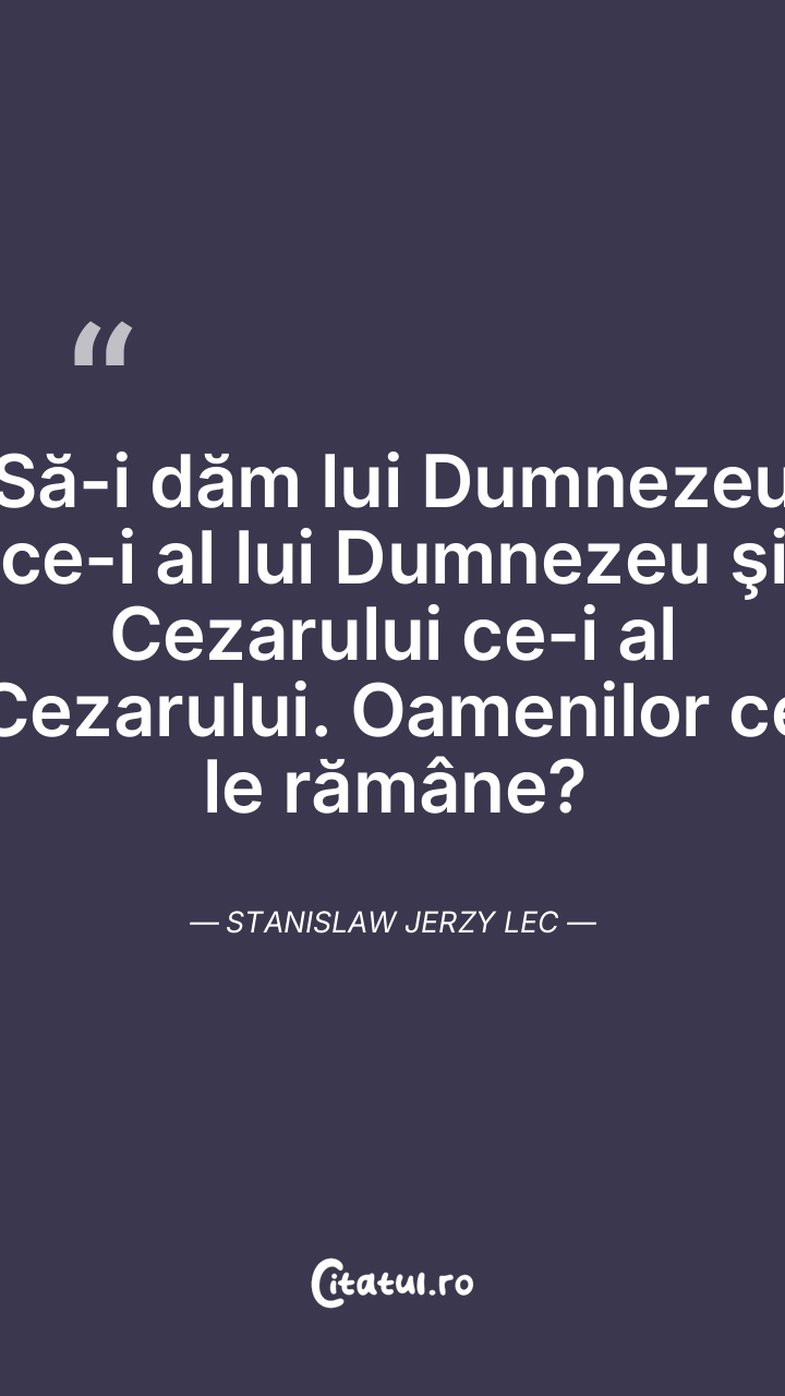Să-i dăm lui Dumnezeu ce-i al lui Dumnezeu şi Cezarului ce-i al Cezarului. Oamenilor ce le rămâne? Stanislaw Jerzy Lec