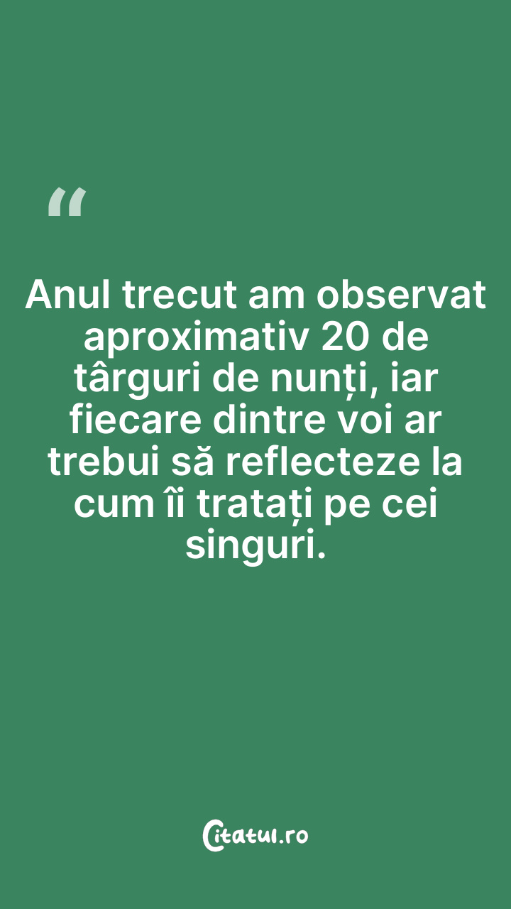 Anul trecut am observat aproximativ 20 de târguri de nunți, iar fiecare dintre voi ar trebui să reflecteze la cum îi tratați pe cei singuri.