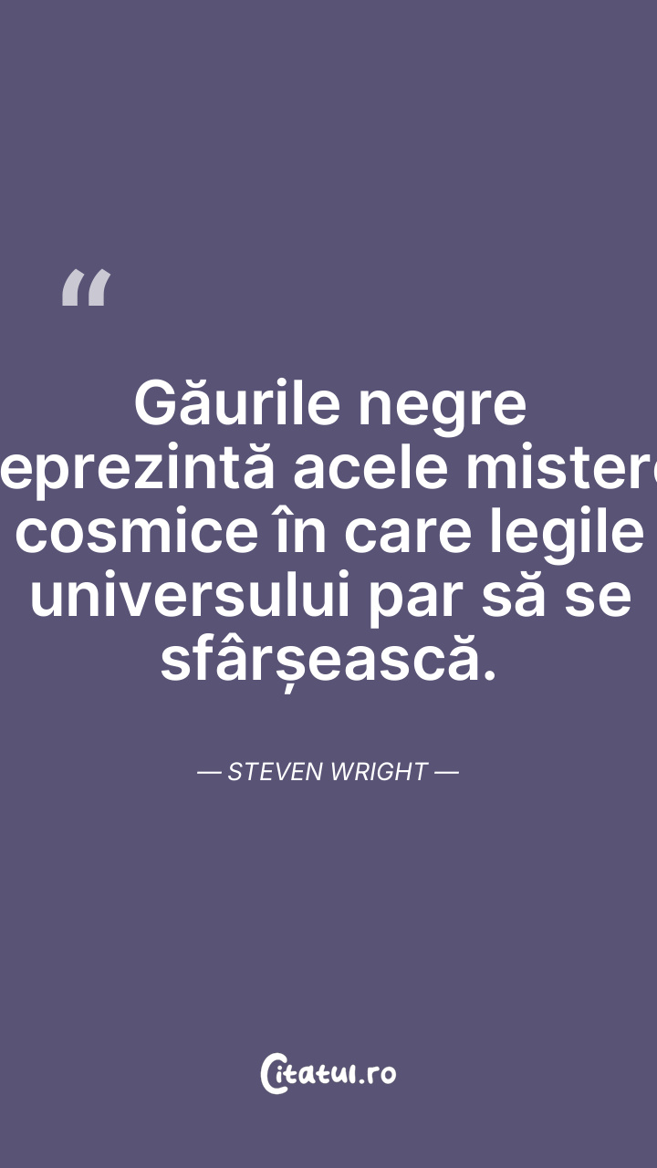 Găurile negre reprezintă acele mistere cosmice în care legile universului par să se sfârșească. Steven Wright