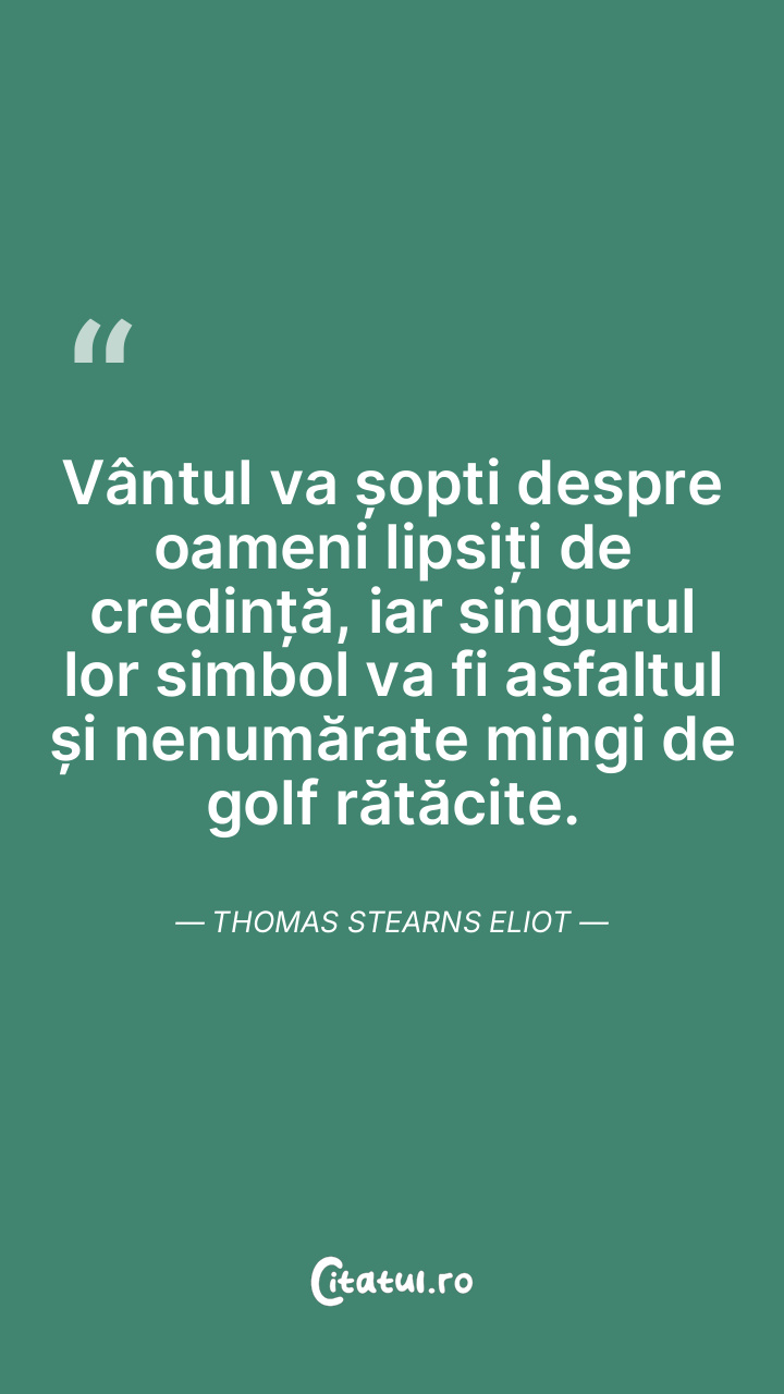 Vântul va șopti despre oameni lipsiți de credință, iar singurul lor simbol va fi asfaltul și nenumărate mingi de golf rătăcite. Thomas Stearns Eliot