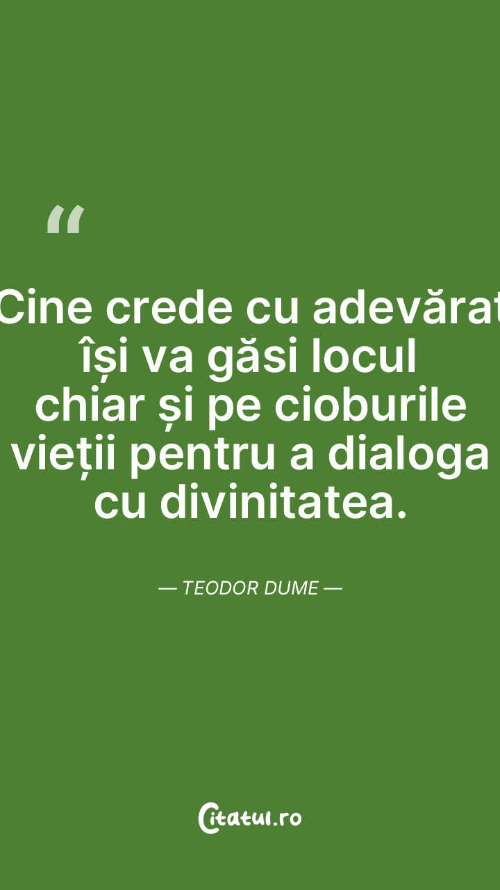 Cine crede cu adevărat își va găsi locul chiar și pe cioburile vieții pentru a dialoga cu divinitatea. Teodor Dume