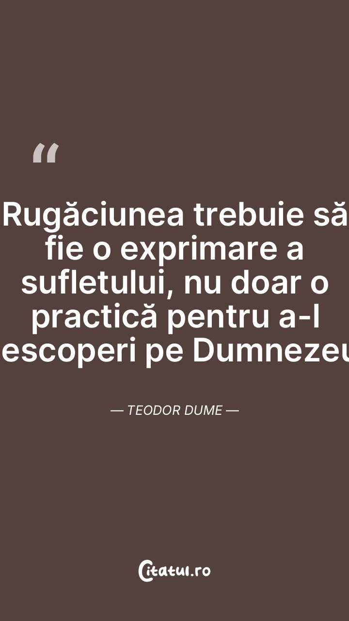 Rugăciunea trebuie să fie o exprimare a sufletului, nu doar o practică pentru a-l descoperi pe Dumnezeu. Teodor Dume