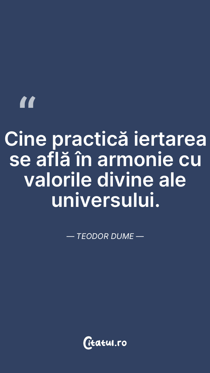 Cine practică iertarea se află în armonie cu valorile divine ale universului. Teodor Dume