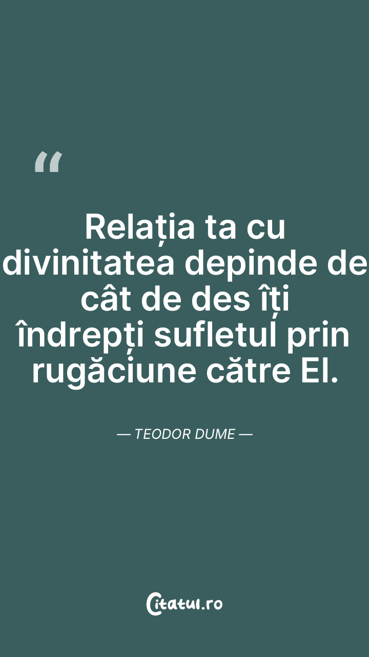 Relația ta cu divinitatea depinde de cât de des îți îndrepți sufletul prin rugăciune către El. Teodor Dume