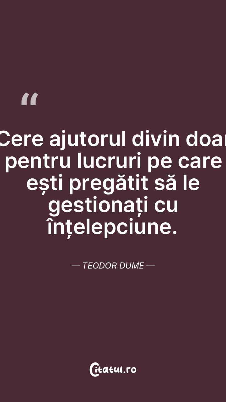 Cere ajutorul divin doar pentru lucruri pe care ești pregătit să le gestionați cu înțelepciune. Teodor Dume