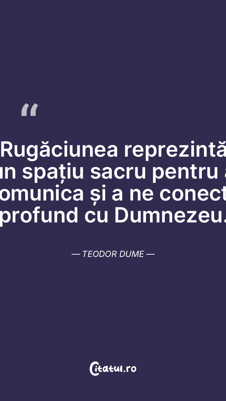 Rugăciunea reprezintă un spațiu sacru pentru a comunica și a ne conecta profund cu Dumnezeu. Teodor Dume