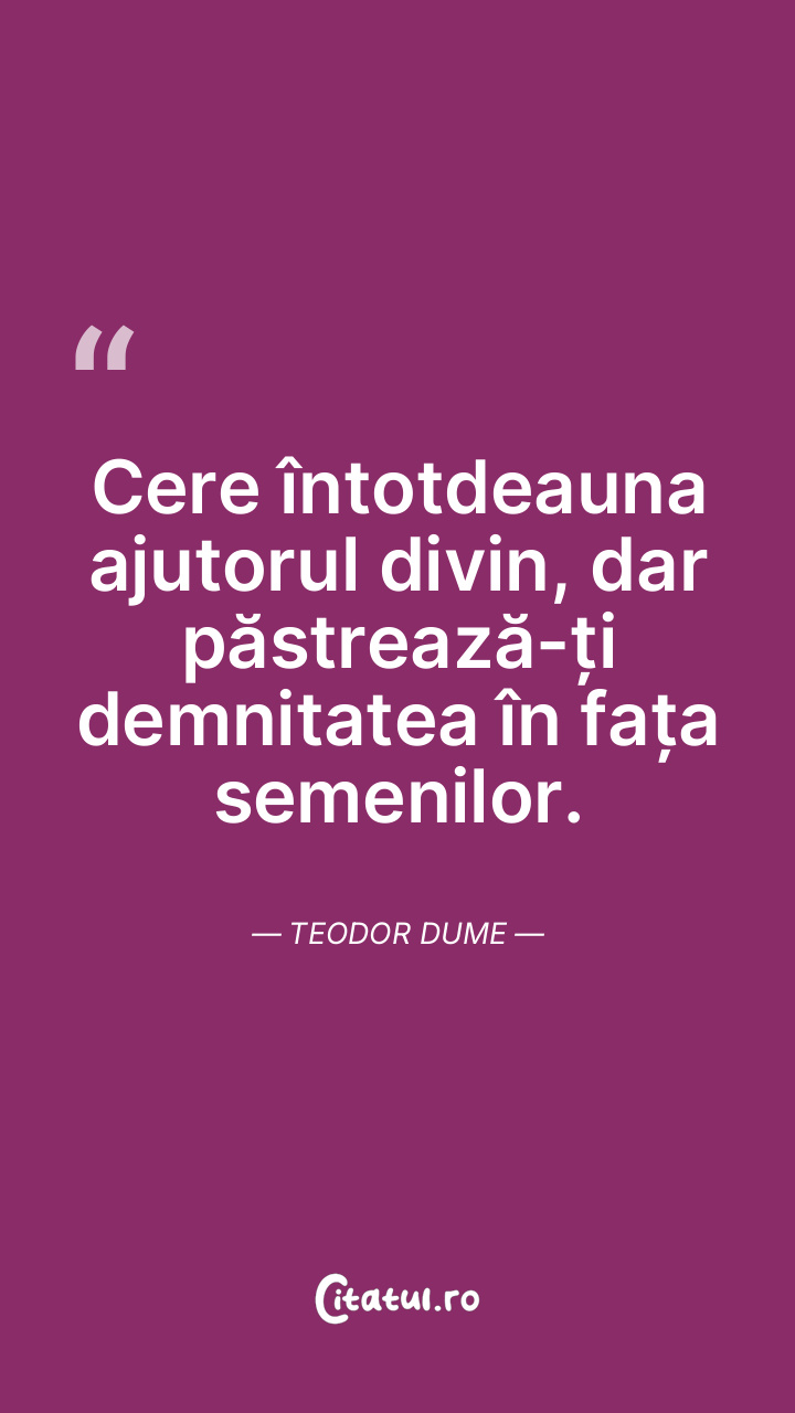 Cere întotdeauna ajutorul divin, dar păstrează-ți demnitatea în fața semenilor. Teodor Dume