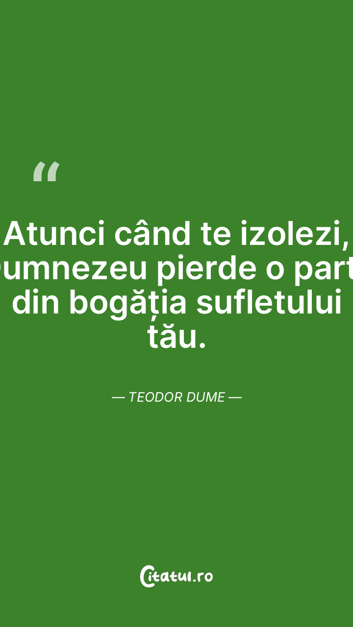 Atunci când te izolezi, Dumnezeu pierde o parte din bogăția sufletului tău. Teodor Dume