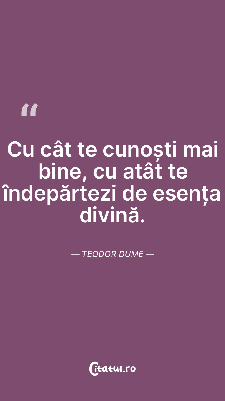 Cu cât te cunoști mai bine, cu atât te îndepărtezi de esența divină. Teodor Dume