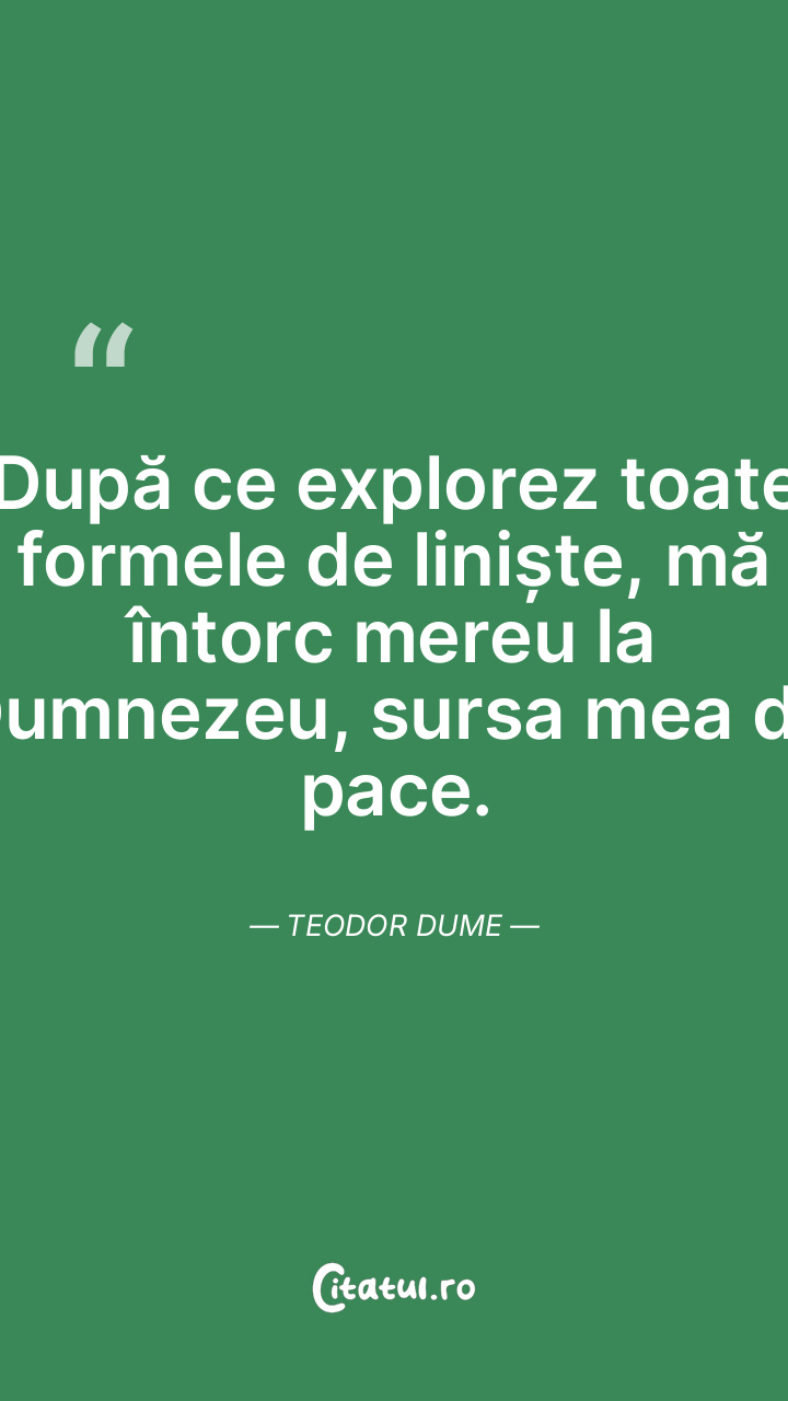 După ce explorez toate formele de liniște, mă întorc mereu la Dumnezeu, sursa mea de pace. Teodor Dume