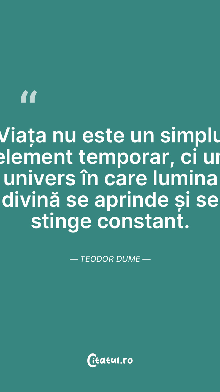 Viața nu este un simplu element temporar, ci un univers în care lumina divină se aprinde și se stinge constant. Teodor Dume