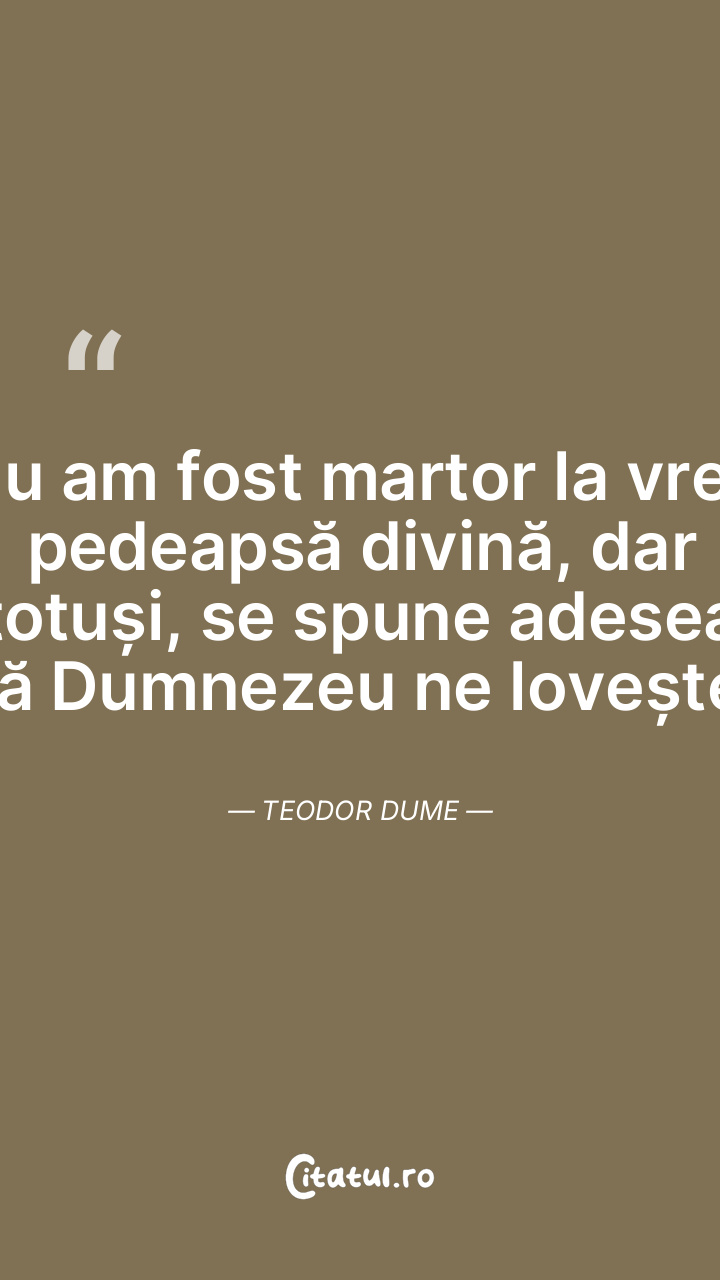 Nu am fost martor la vreo pedeapsă divină, dar totuși, se spune adesea că Dumnezeu ne lovește. Teodor Dume