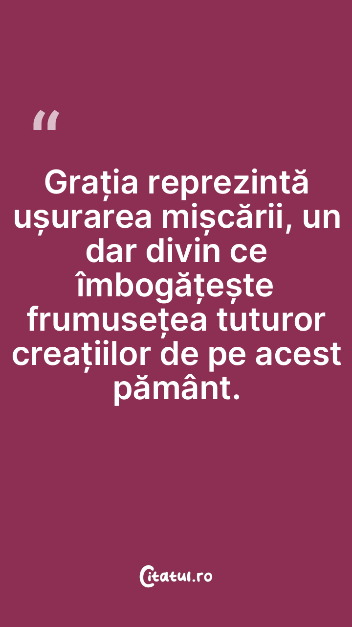 Grația reprezintă ușurarea mișcării, un dar divin ...