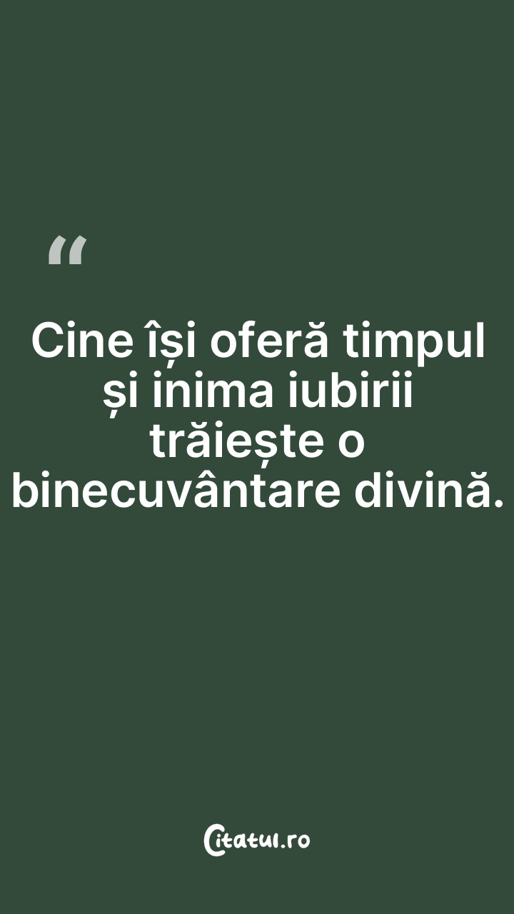Cine își oferă timpul și inima iubirii trăiește o binecuvântare divină.
