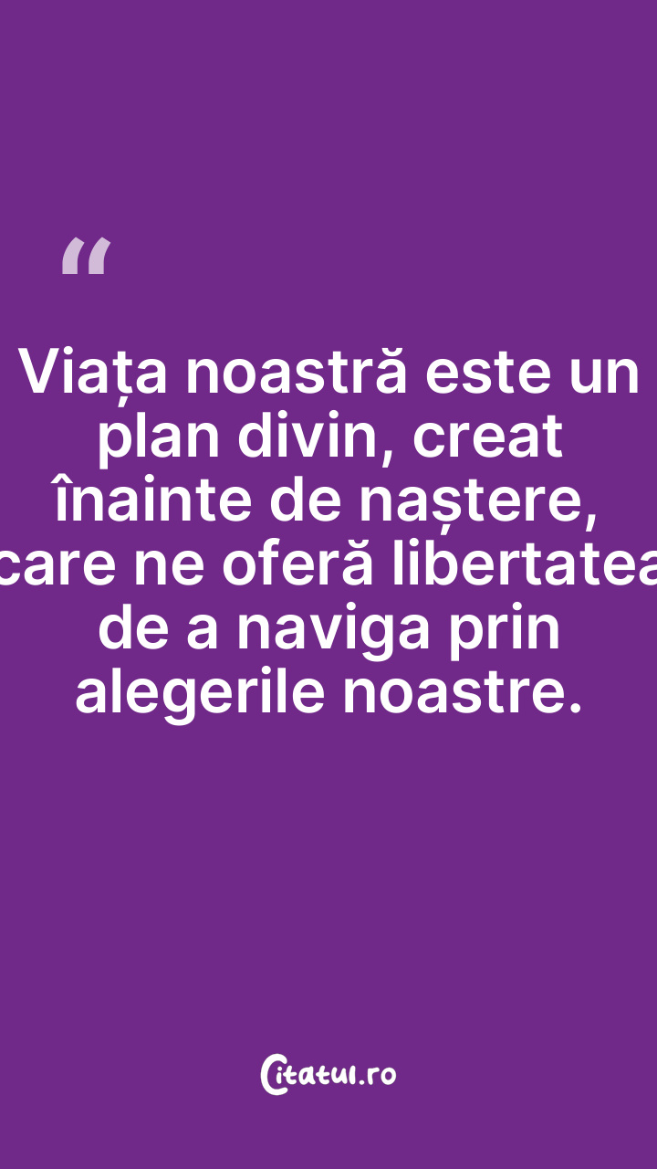 Viața noastră este un plan divin, creat înainte de naștere, care ne oferă libertatea de a naviga prin alegerile noastre.