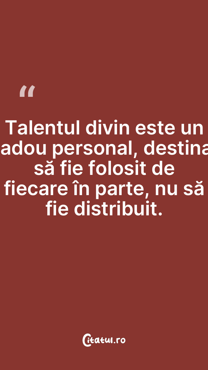 Talentul divin este un cadou personal, destinat să fie folosit de fiecare în parte, nu să fie distribuit.