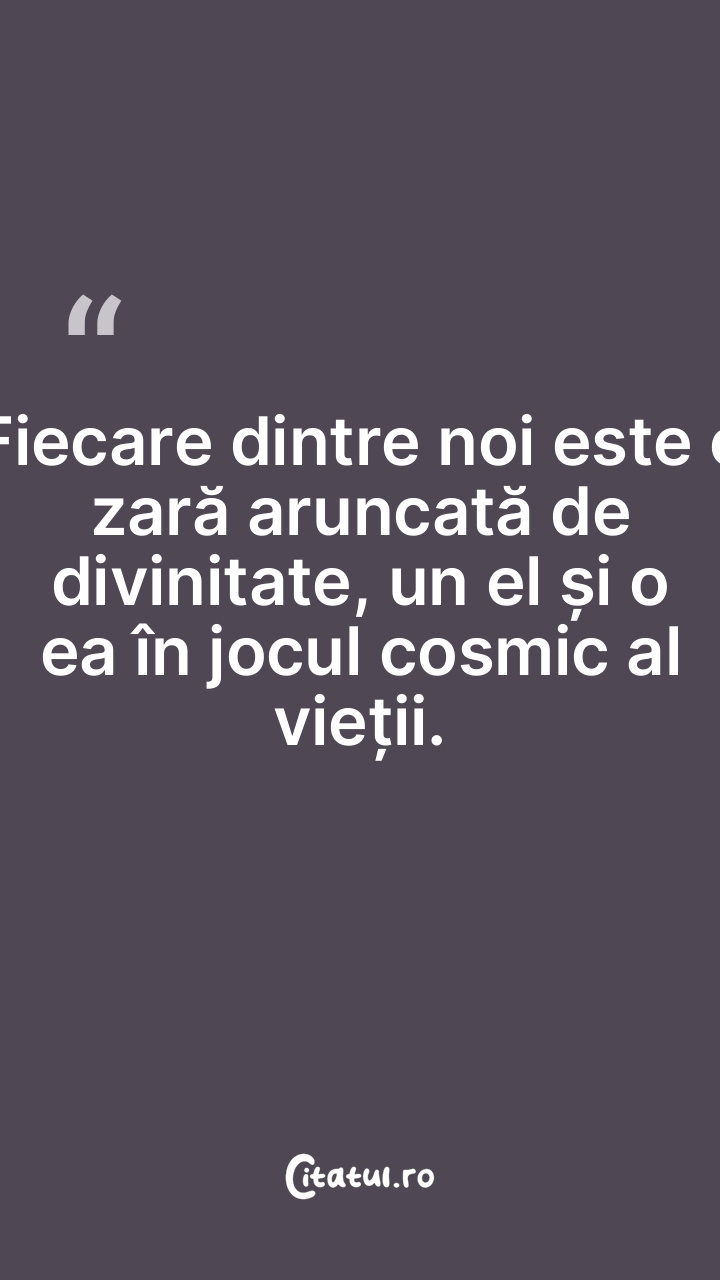 Fiecare dintre noi este o zară aruncată de divinitate, un el și o ea în jocul cosmic al vieții.