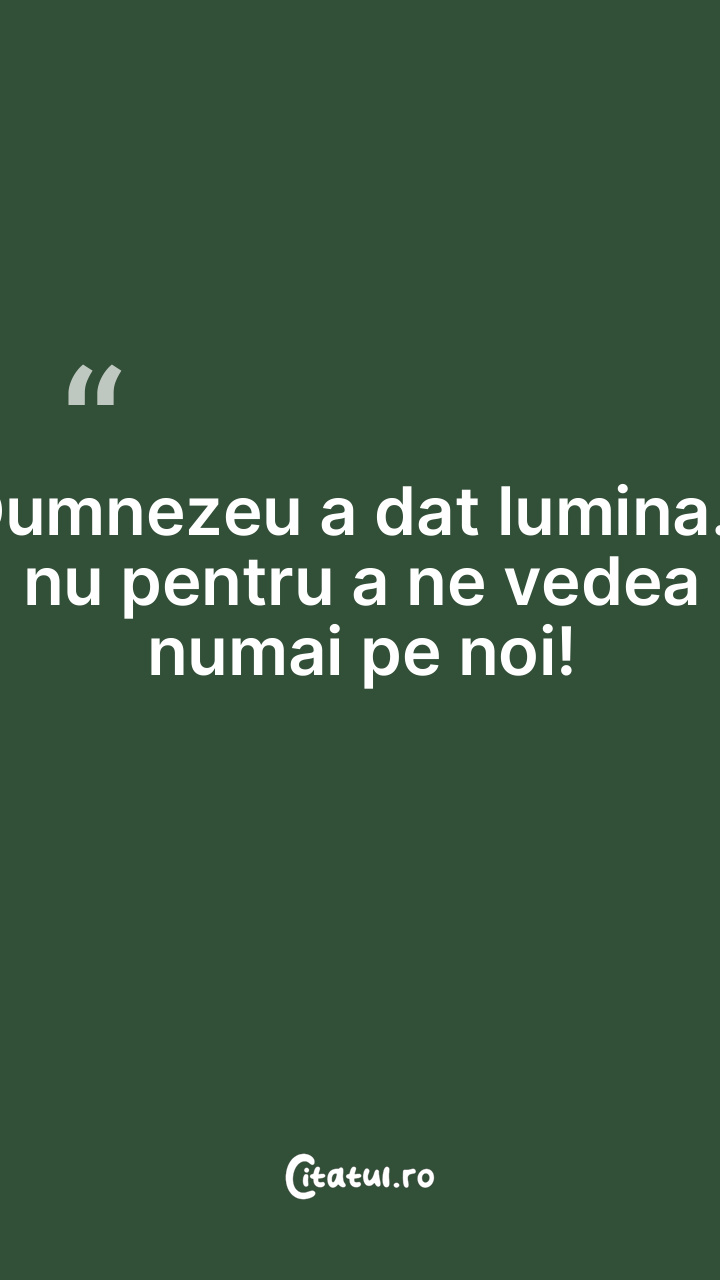 Dumnezeu a dat lumina... nu pentru a ne vedea numai pe noi!
