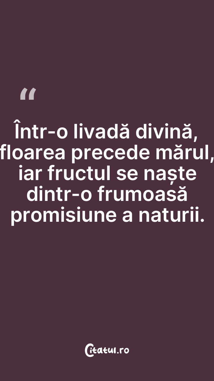 Într-o livadă divină, floarea precede mărul, iar f...