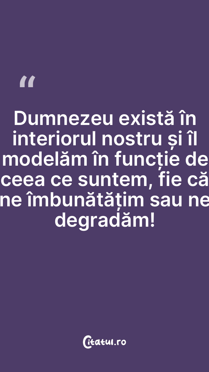 Dumnezeu există în interiorul nostru și îl modelăm în funcție de ceea ce suntem, fie că ne îmbunătățim sau ne degradăm!