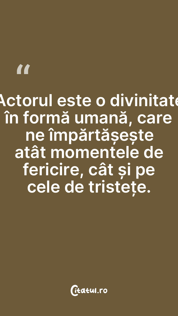 Actorul este o divinitate în formă umană, care ne împărtășește atât momentele de fericire, cât și pe cele de tristețe.