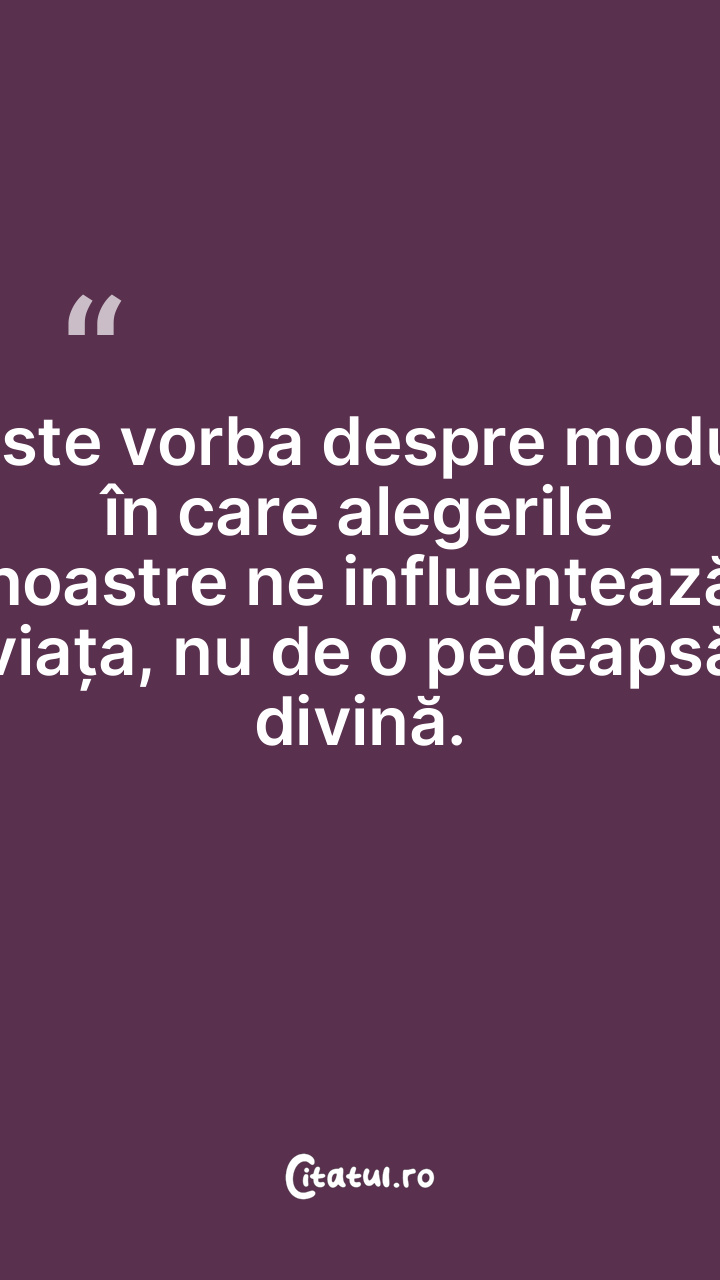 Este vorba despre modul în care alegerile noastre ne influențează viața, nu de o pedeapsă divină.