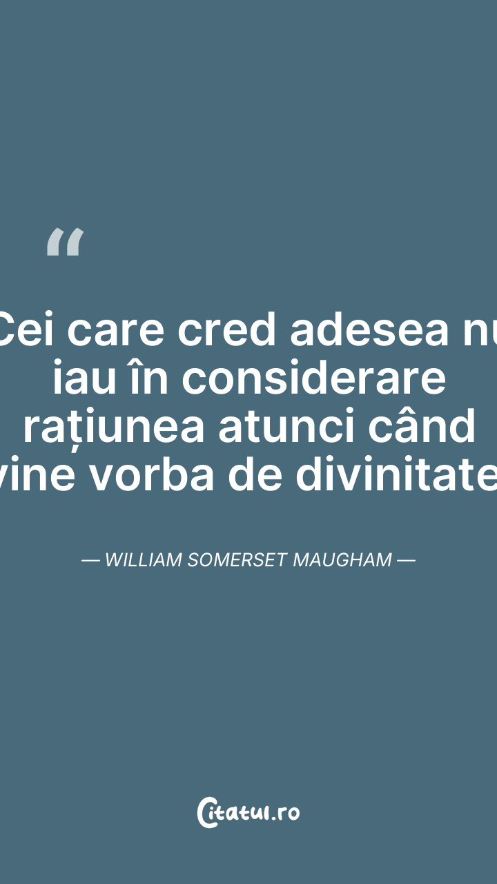 Cei care cred adesea nu iau în considerare rațiunea atunci când vine vorba de divinitate. William Somerset Maugham