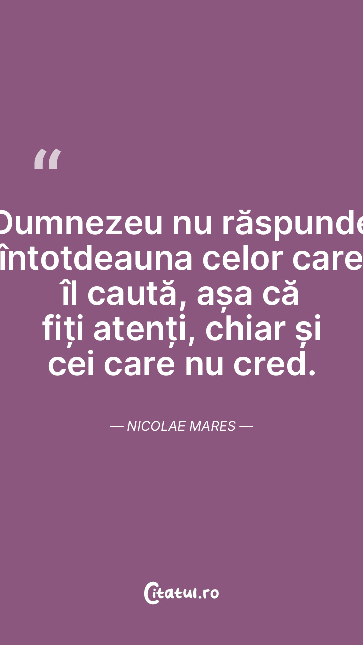 Dumnezeu nu răspunde întotdeauna celor care îl caută, așa că fiți atenți, chiar și cei care nu cred. Nicolae Mares