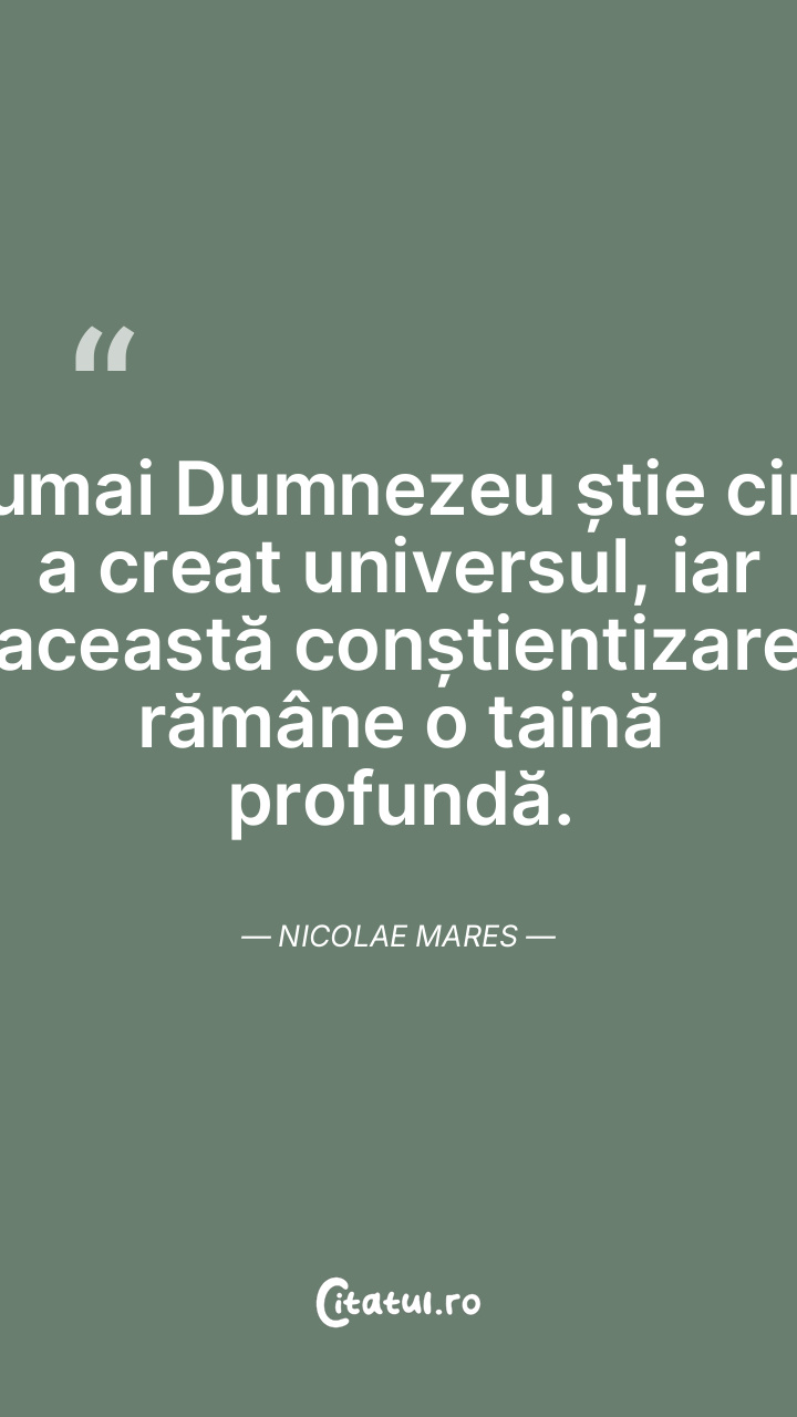 Numai Dumnezeu știe cine a creat universul, iar această conștientizare rămâne o taină profundă. Nicolae Mares