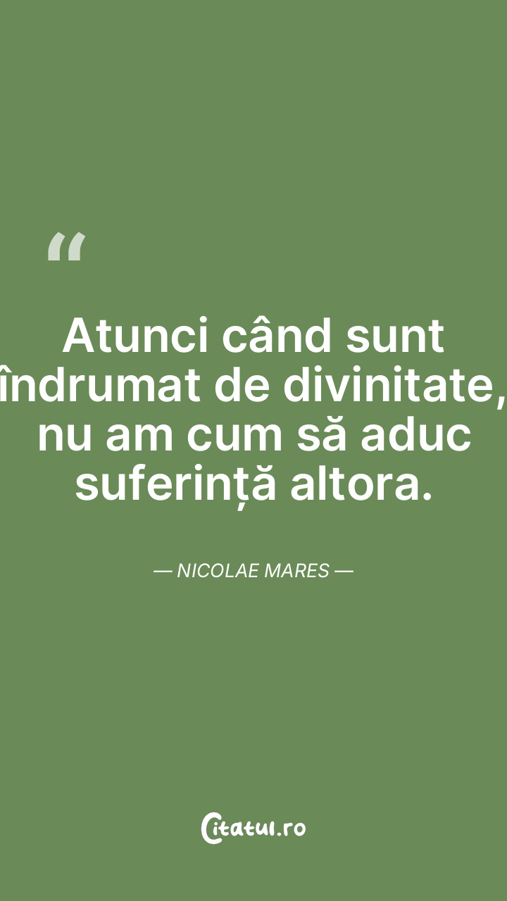 Atunci când sunt îndrumat de divinitate, nu am cum să aduc suferință altora. Nicolae Mares