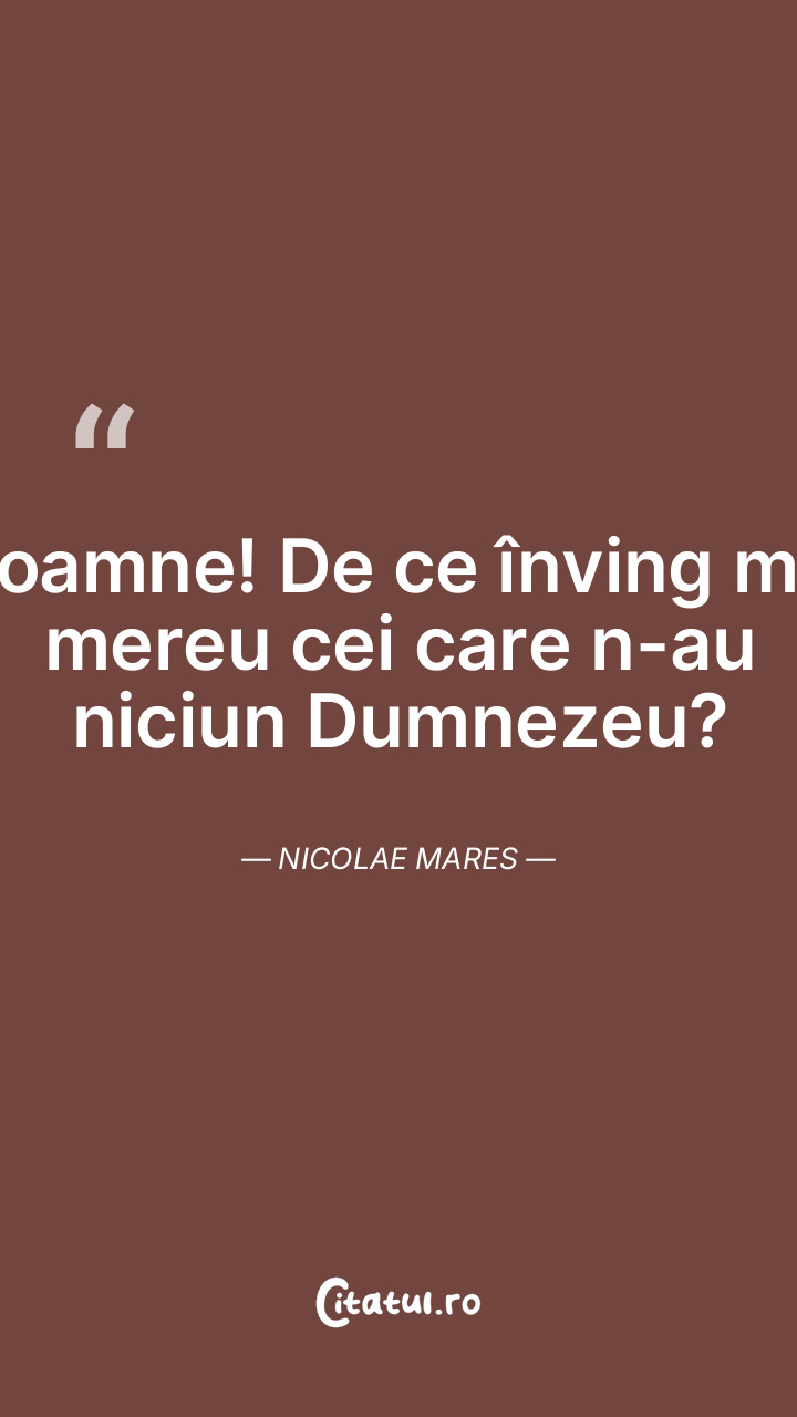 Doamne! De ce înving mai mereu cei care n-au niciun Dumnezeu? Nicolae Mares