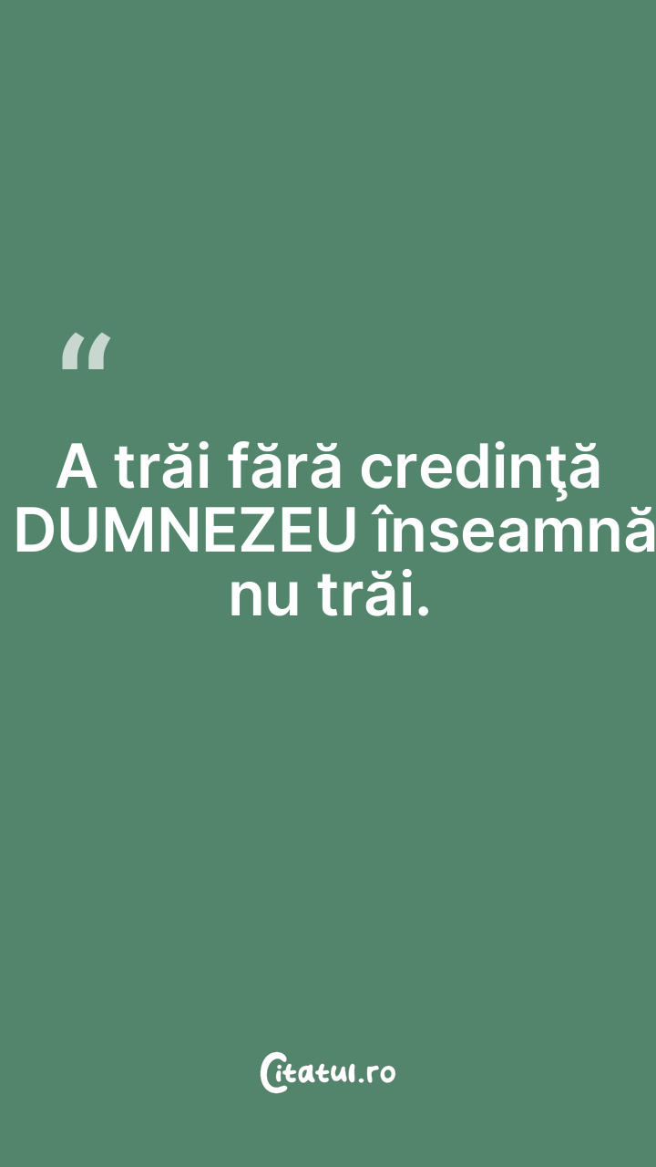 A trăi fără credinţă în DUMNEZEU înseamnă a nu tră...