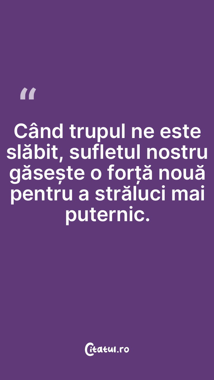 Când trupul ne este slăbit, sufletul nostru găsește o forță nouă pentru a străluci mai puternic.