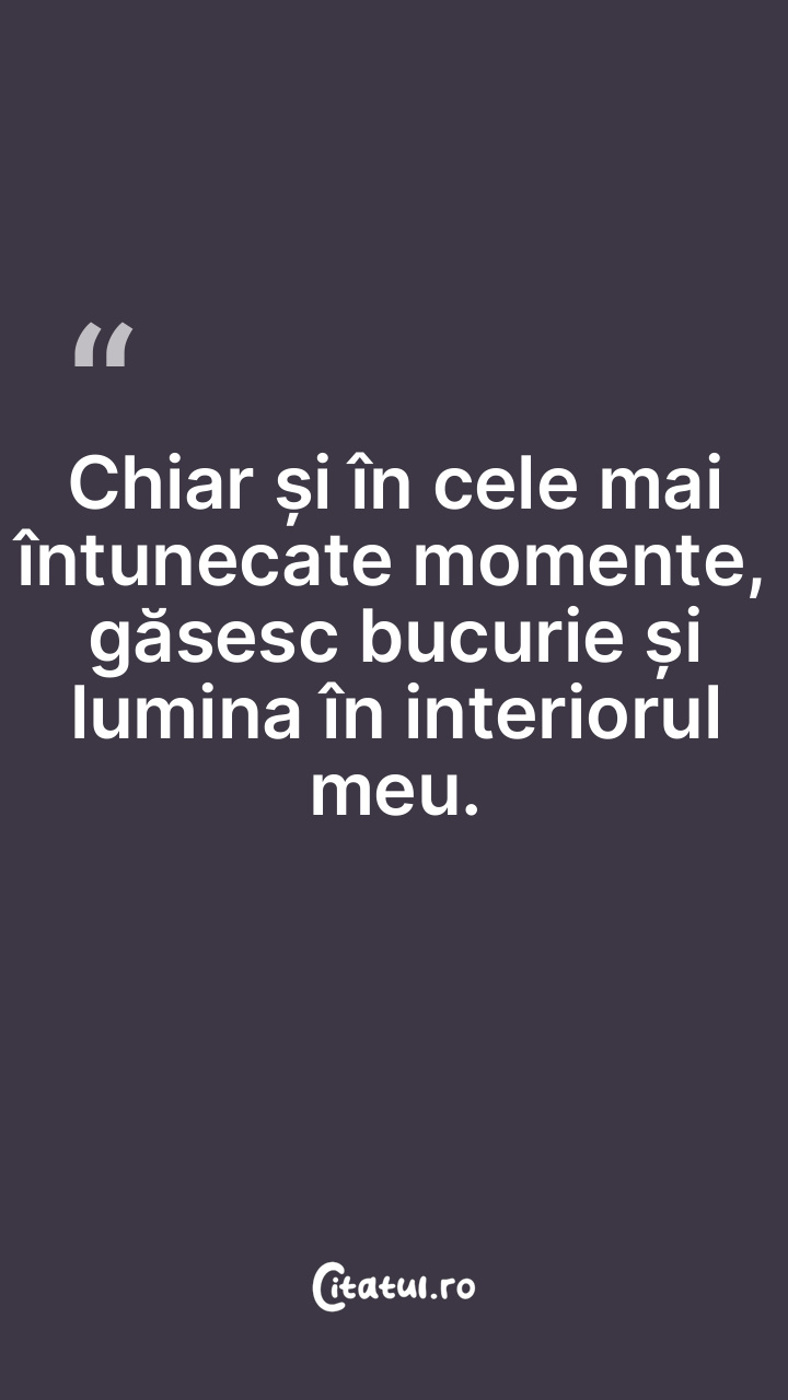 Chiar și în cele mai întunecate momente, găsesc bucurie și lumina în interiorul meu.