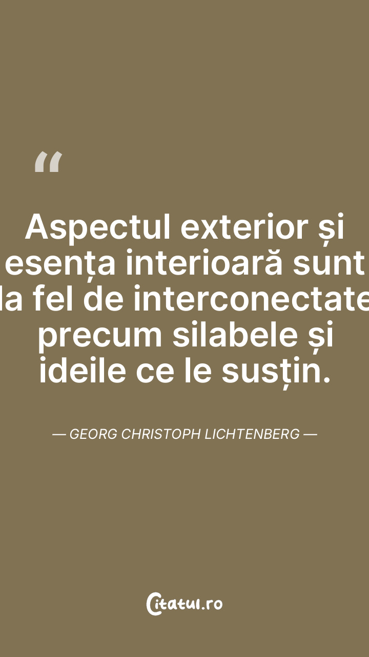 Aspectul exterior și esența interioară sunt la fel de interconectate precum silabele și ideile ce le susțin. Georg Christoph Lichtenberg