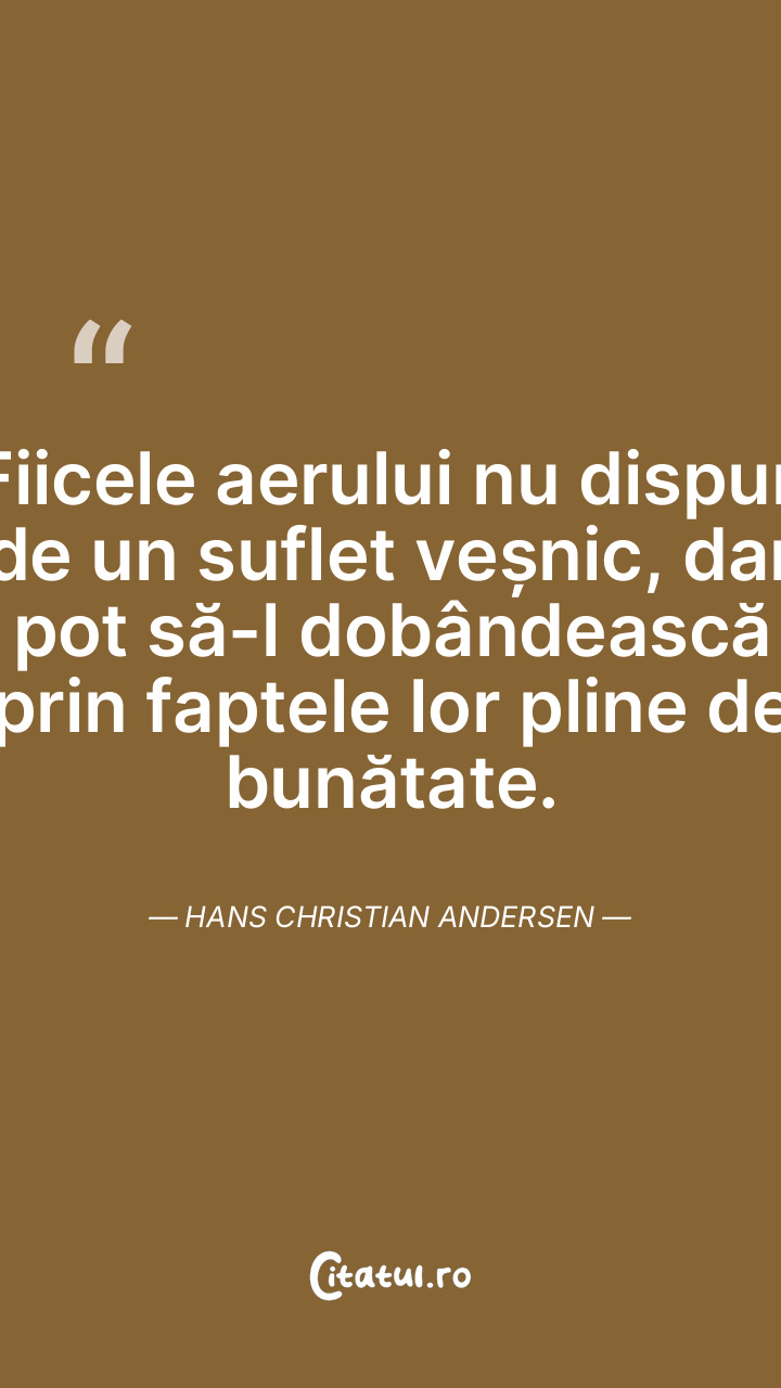 Fiicele aerului nu dispun de un suflet veșnic, dar pot să-l dobândească prin faptele lor pline de bunătate. Hans Christian Andersen