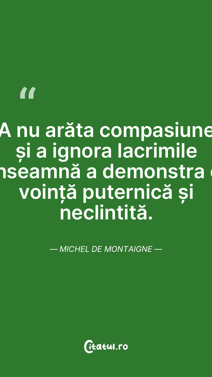 A nu arăta compasiune și a ignora lacrimile înseamnă a demonstra o voință puternică și neclintită. Michel de Montaigne