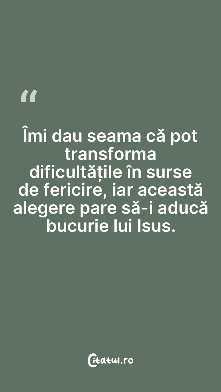 Îmi dau seama că pot transforma dificultățile în surse de fericire, iar această alegere pare să-i aducă bucurie lui Isus.