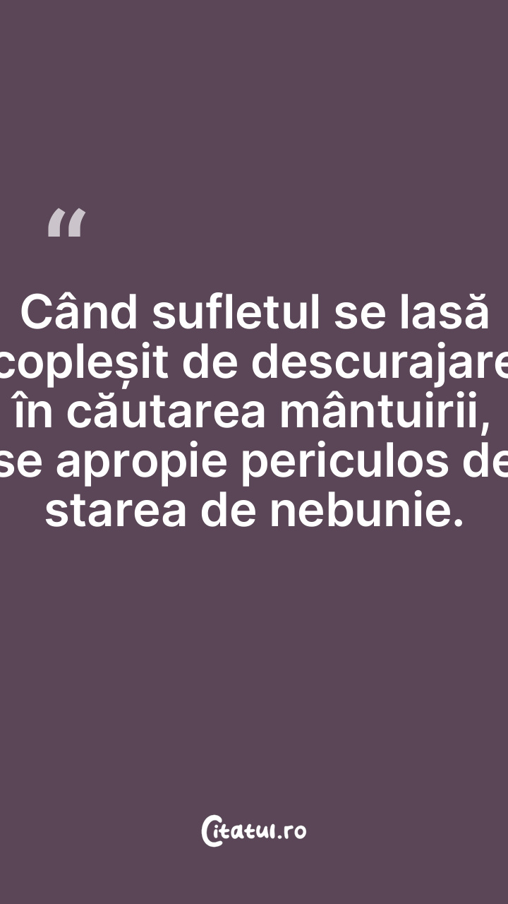 Când sufletul se lasă copleșit de descurajare în căutarea mântuirii, se apropie periculos de starea de nebunie.
