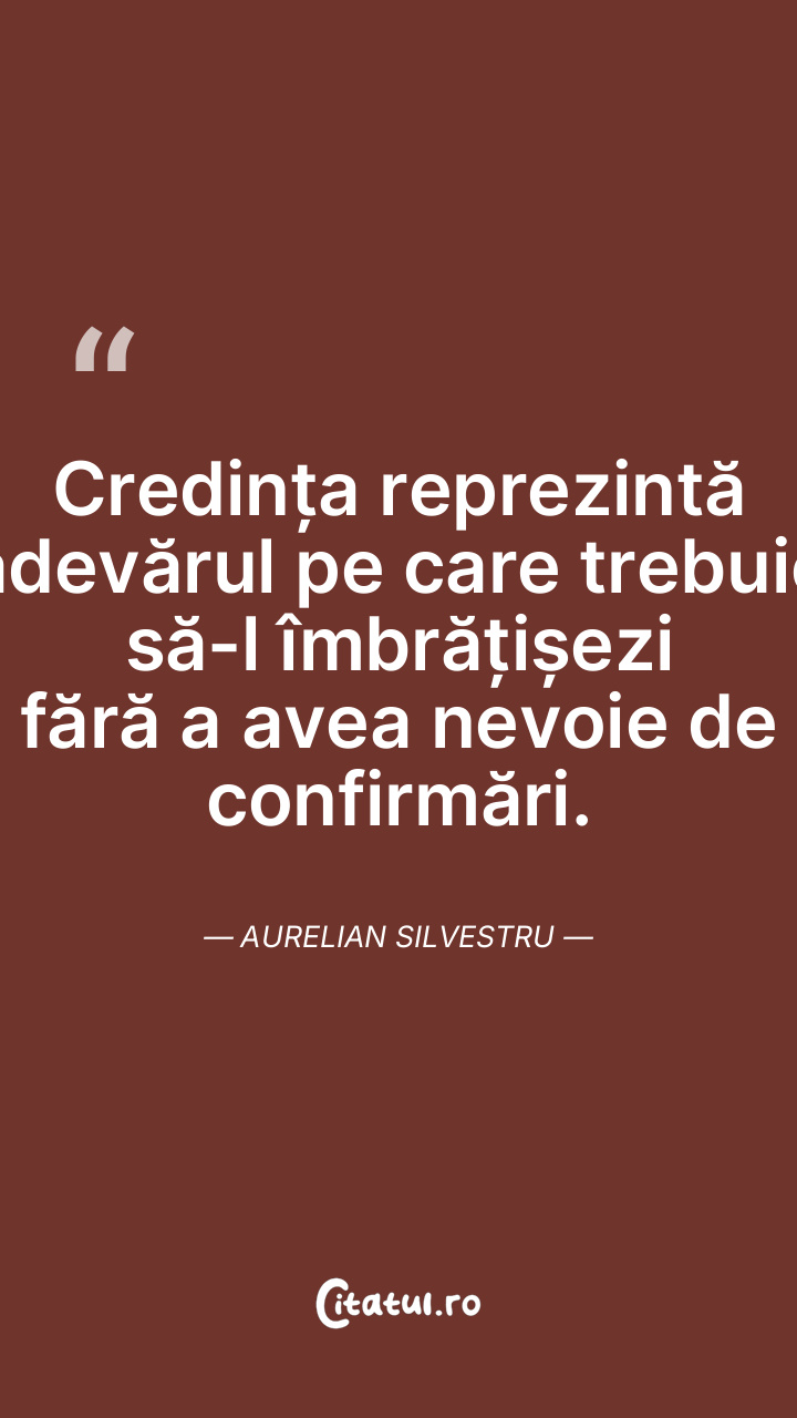 Credința reprezintă adevărul pe care trebuie să-l îmbrățișezi fără a avea nevoie de confirmări. Aurelian Silvestru