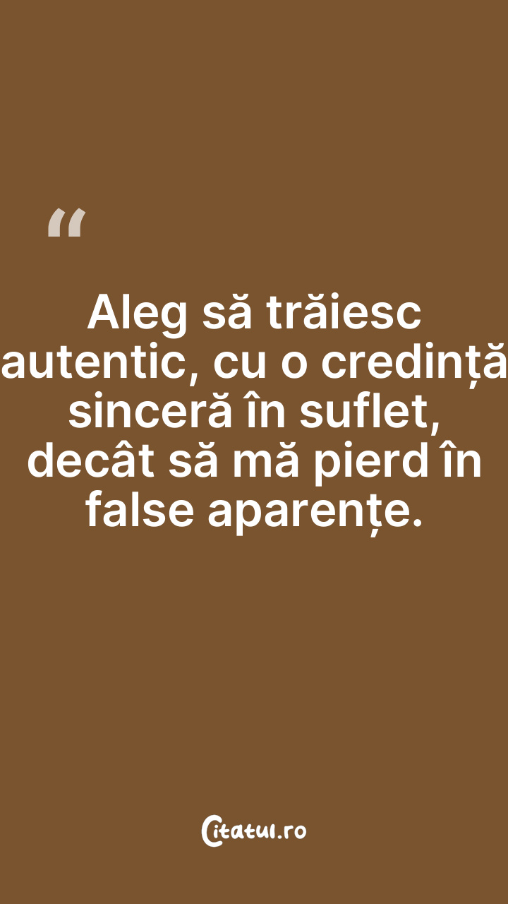 Aleg să trăiesc autentic, cu o credință sinceră în...