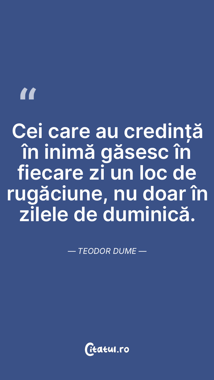 Cei care au credință în inimă găsesc în fiecare zi un loc de rugăciune, nu doar în zilele de duminică. Teodor Dume