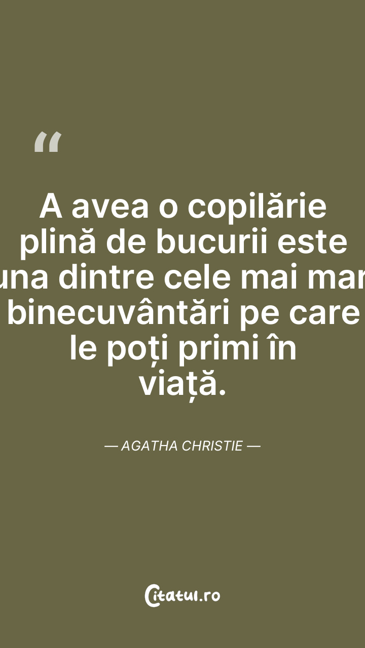 A avea o copilărie plină de bucurii este una dintre cele mai mari binecuvântări pe care le poți primi în viață. Agatha Christie