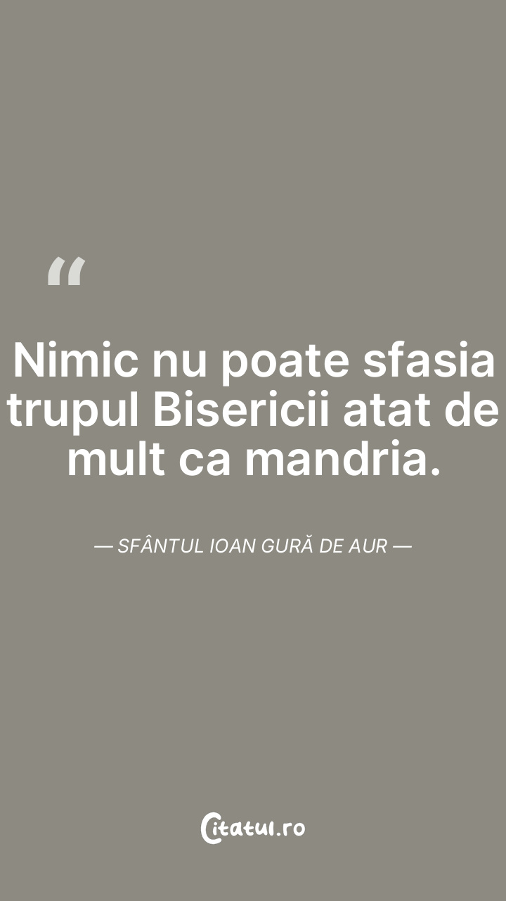 Nimic nu poate sfasia trupul Bisericii atat de mult ca mandria. Sfântul Ioan Gură de Aur