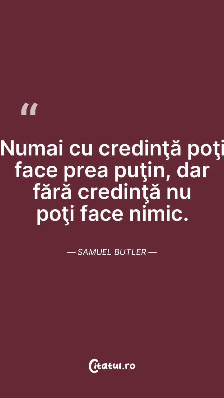 Numai cu credinţă poţi face prea puţin, dar fără credinţă nu poţi face nimic. Samuel Butler