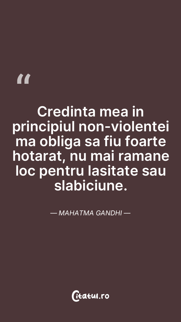 Credinta mea in principiul non-violentei ma obliga sa fiu foarte hotarat, nu mai ramane loc pentru lasitate sau slabiciune. Mahatma Gandhi