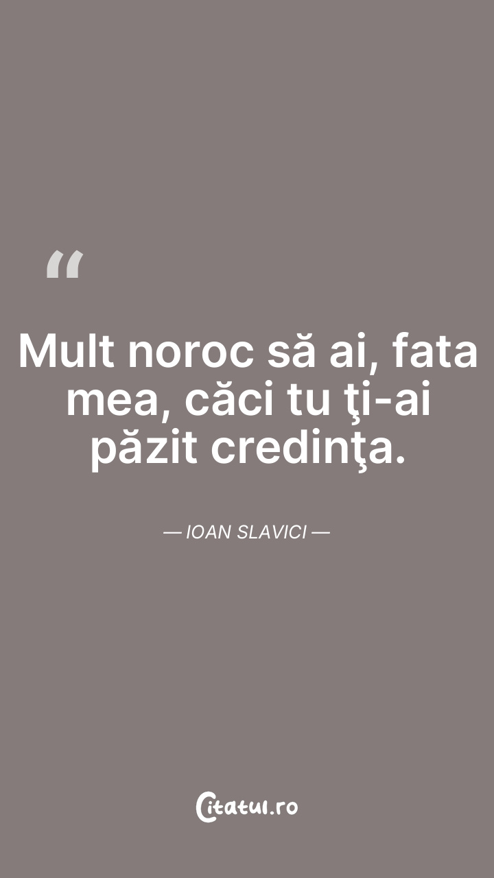 Mult noroc să ai, fata mea, căci tu ţi-ai păzit credinţa. Ioan Slavici