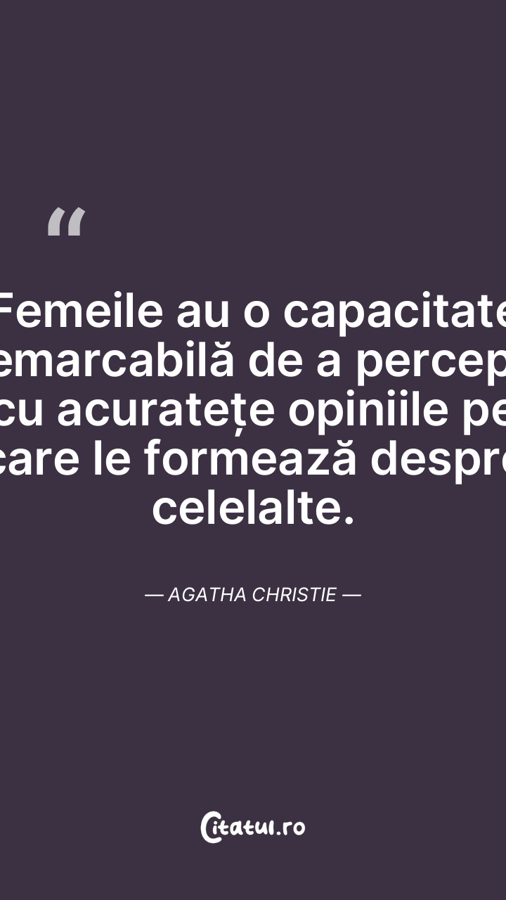 Femeile au o capacitate remarcabilă de a percepe cu acuratețe opiniile pe care le formează despre celelalte. Agatha Christie