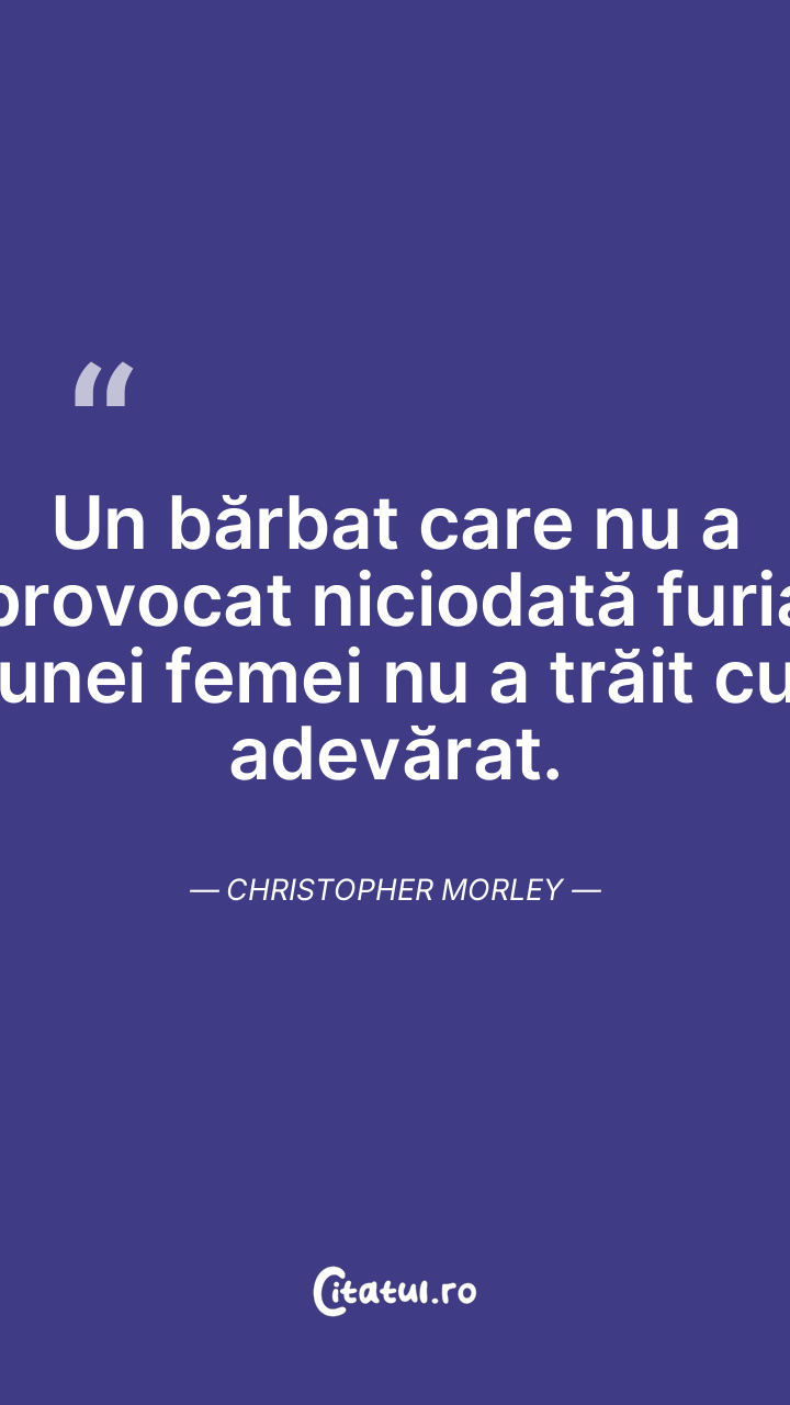 Un bărbat care nu a provocat niciodată furia unei femei nu a trăit cu adevărat. Christopher Morley